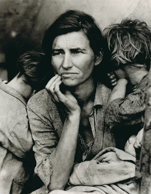 Lange began her photography career in San Francisco, operating a successful portrait studio from 1919 until the mid-1930s. In 1933, she first documented the breadlines and the hardship visible in the streets. The circulation of Lange’s street photographs led to her employment with the Resettlement Administration and then the Farm Security Administration (FSA), documenting the struggles of farm workers in rural America. Lange’s compelling work raised public awareness of the dire need for federal assistance, garnering support for congressional funding of Franklin Delano Roosevelt’s New Deal programs.
